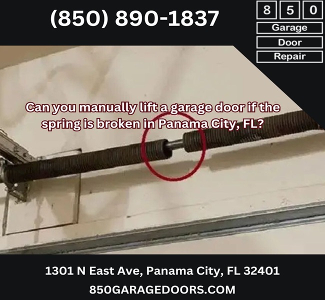 Can you manually lift a garage door if the spring is broken in Panama City, FL?